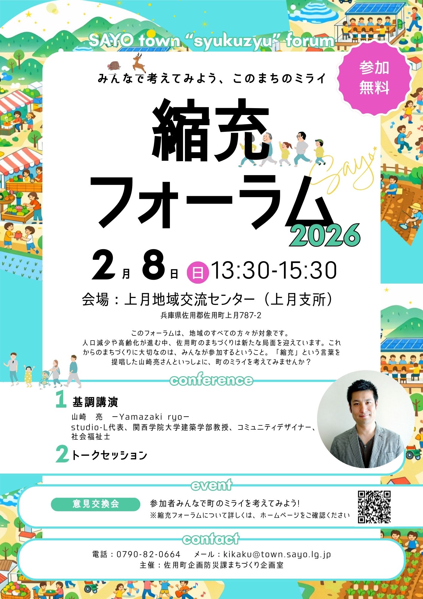 今回は「縮充(しゅくじゅう)」という言葉を生み出したコミュニティデザイナーの山崎亮さんをお招きし、これからの佐用町の未来を、みんなで考えます。