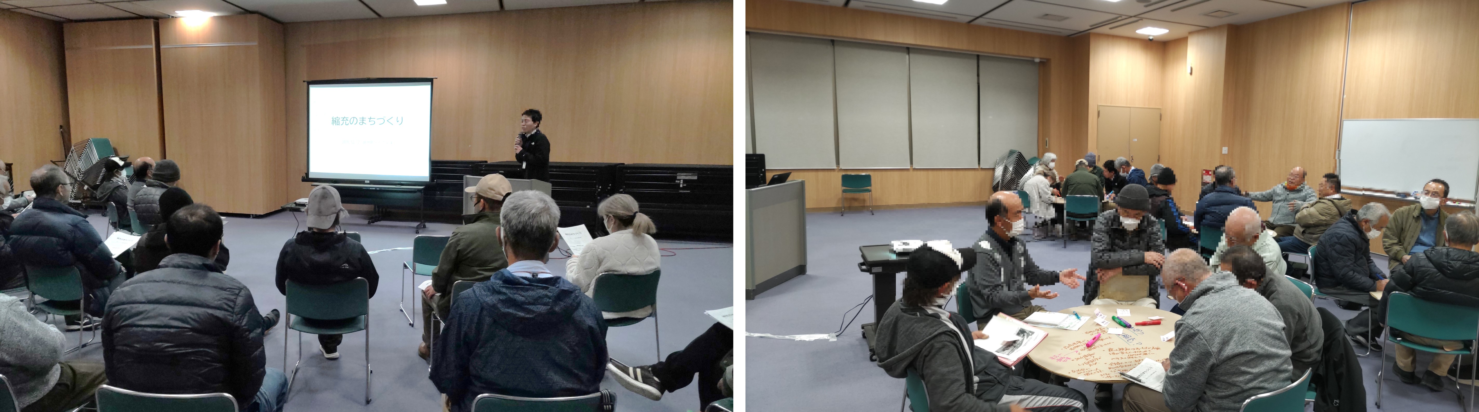 縮充アイデアシートを用い、地域で困っていること、変えたいことをテーマに参加者同士でアイデアを出し合う話し合いをしました。