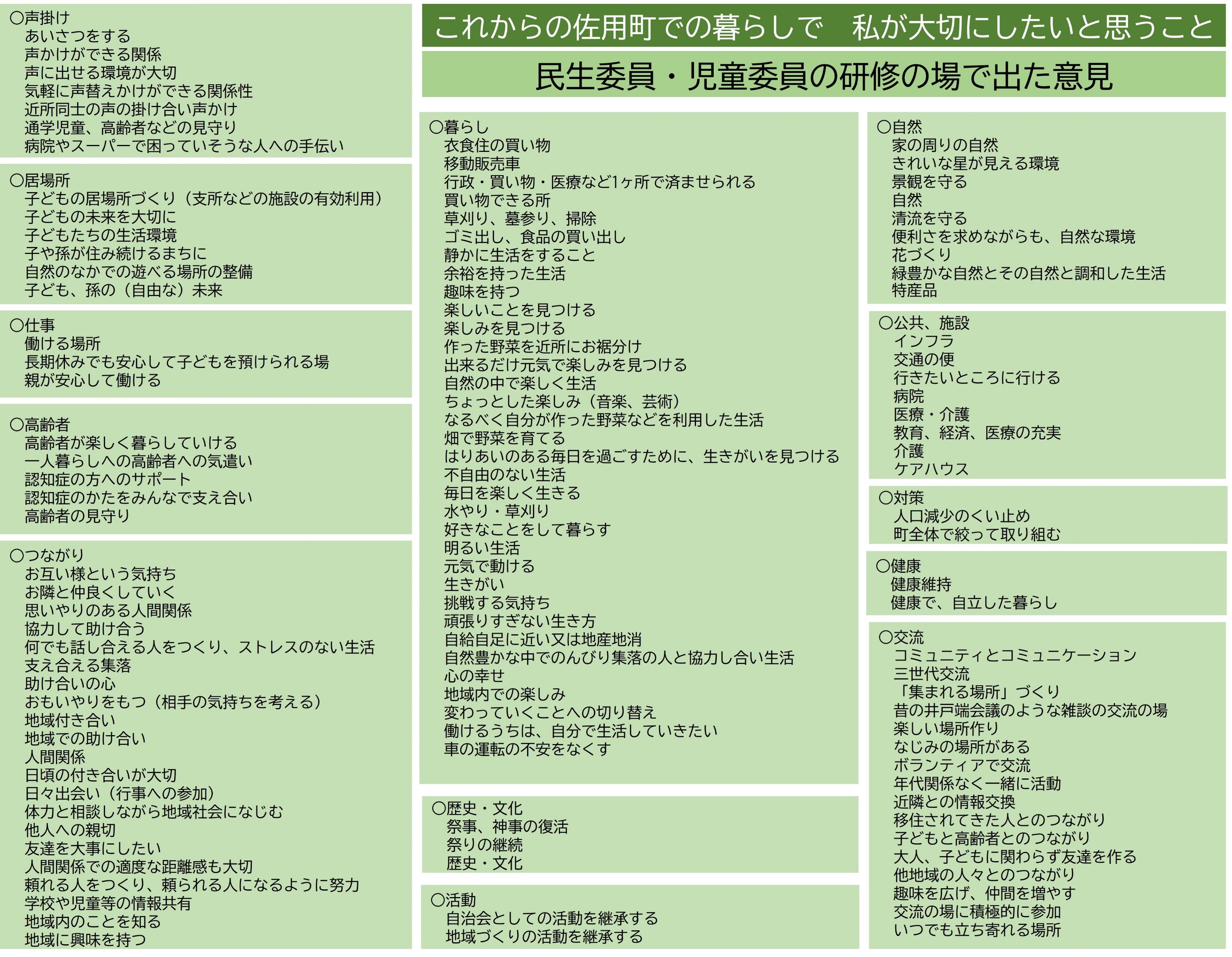 佐用町の現状を共有したあとに、グループに分かれ「これからの佐用町での暮らしで私が大切にしたいと思うこと」について話し合いました。