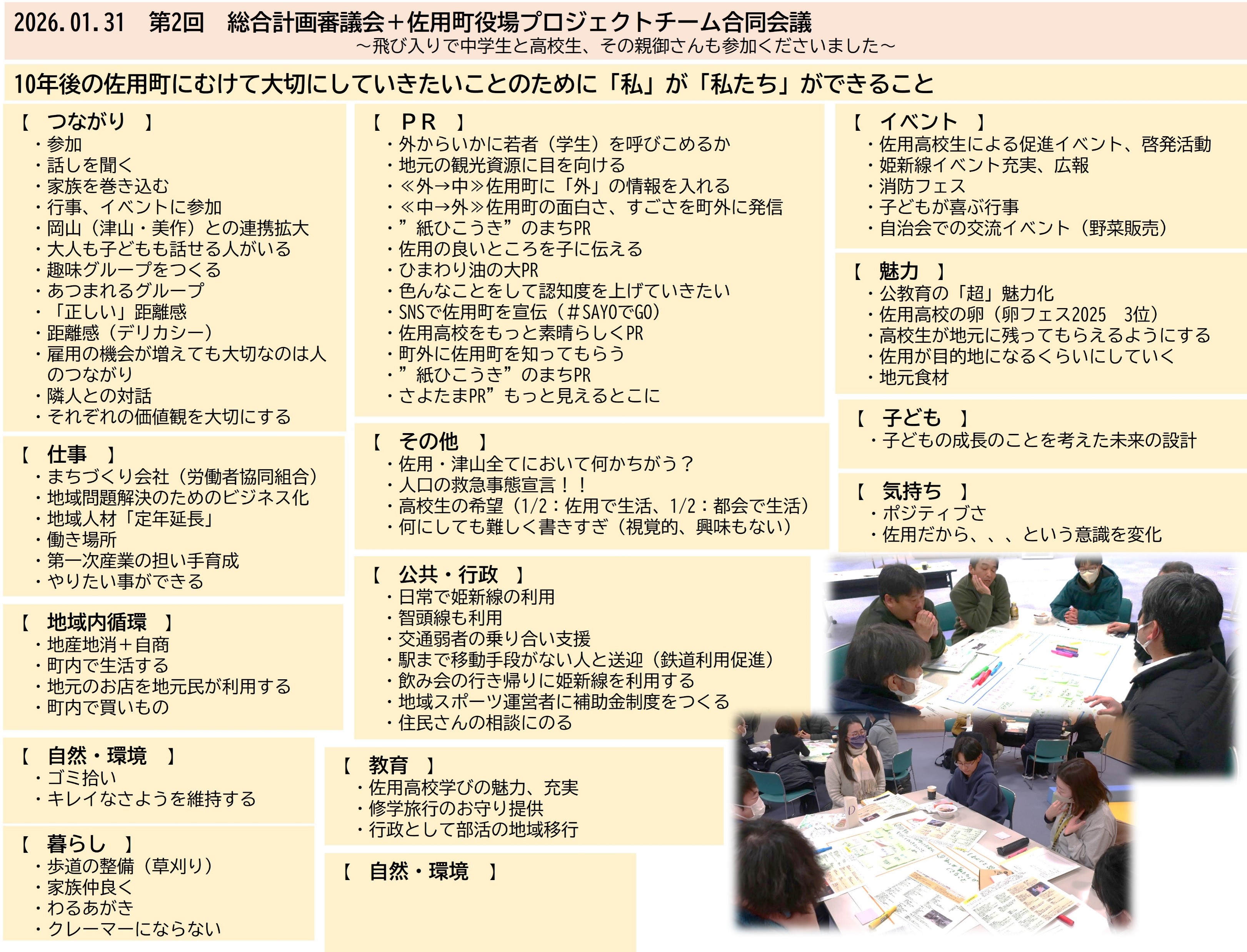 佐用町総合計画審議会と役場プロジェクトチーム合同会議の動き
