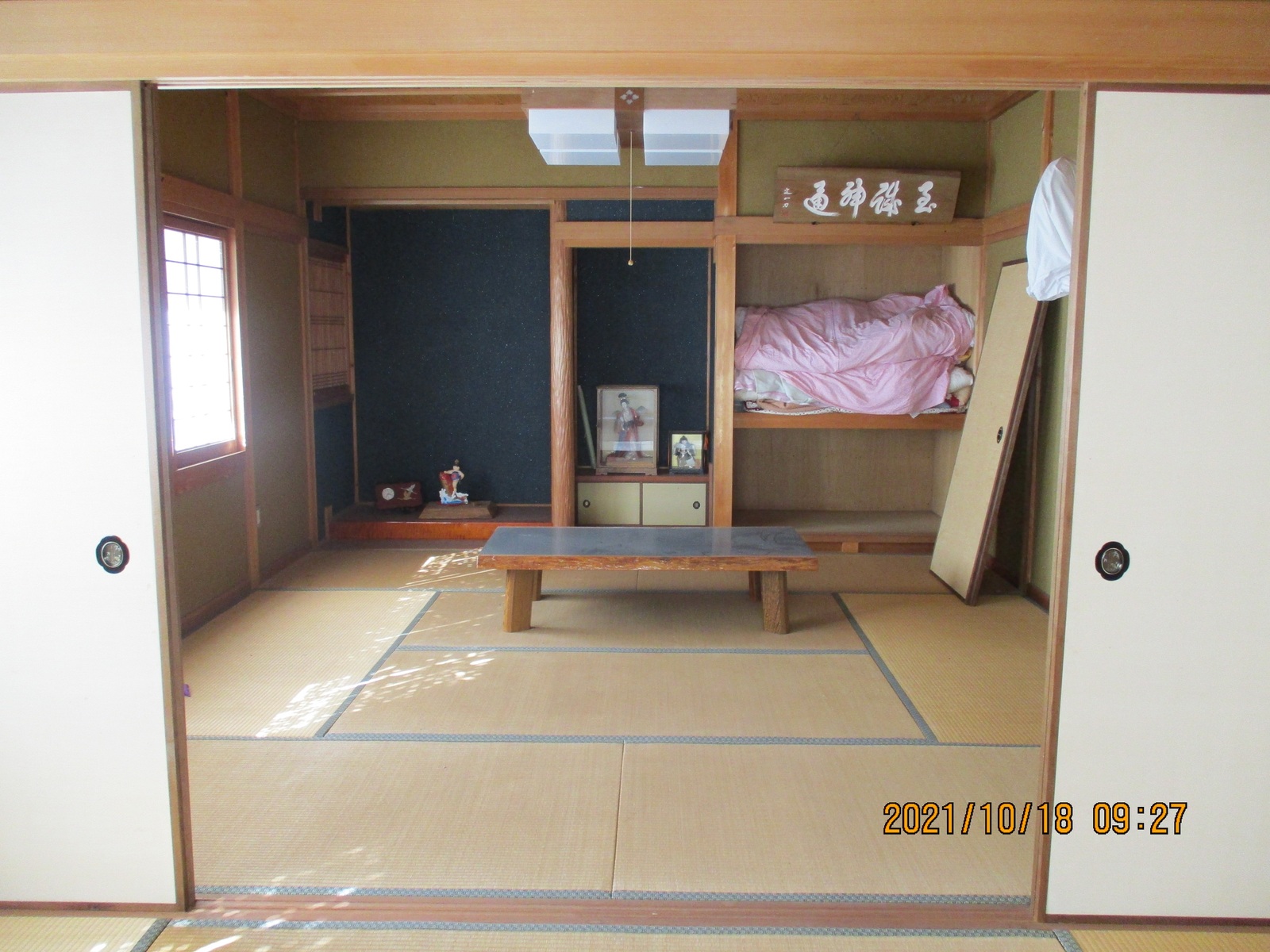 佐用町の東部に位置し、中山間部の静かな農村にあります。昭和50年に建築された母屋の間取りは8DKとなっています。また、離れは昭和60年に建築された綺麗な建物です。間取りは1階が8帖の和室で、2階は和室が2部屋とミニキッチンとなっています。
