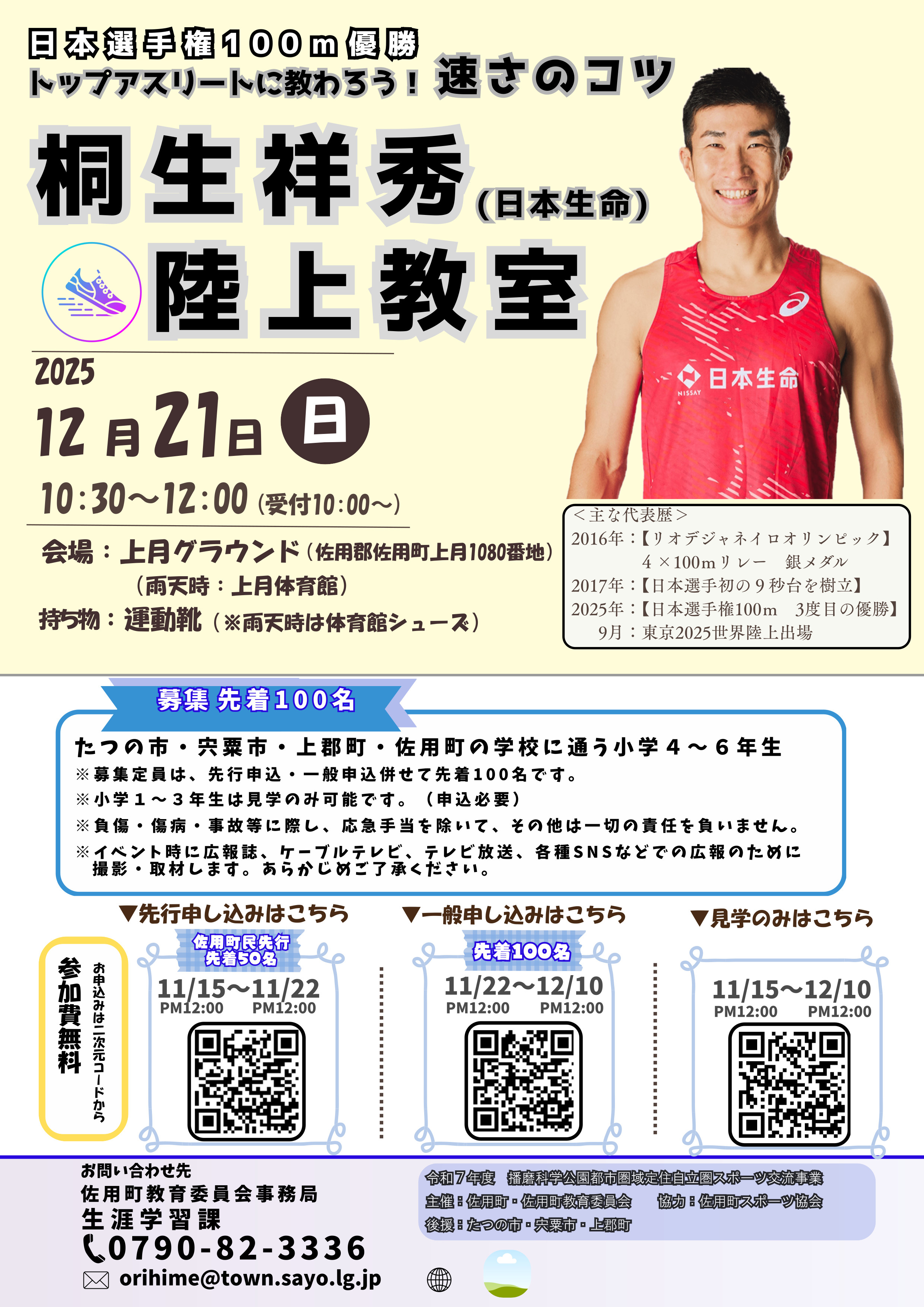東京2025世界陸上にも出場されました、桐生祥秀さんによる陸上教室を