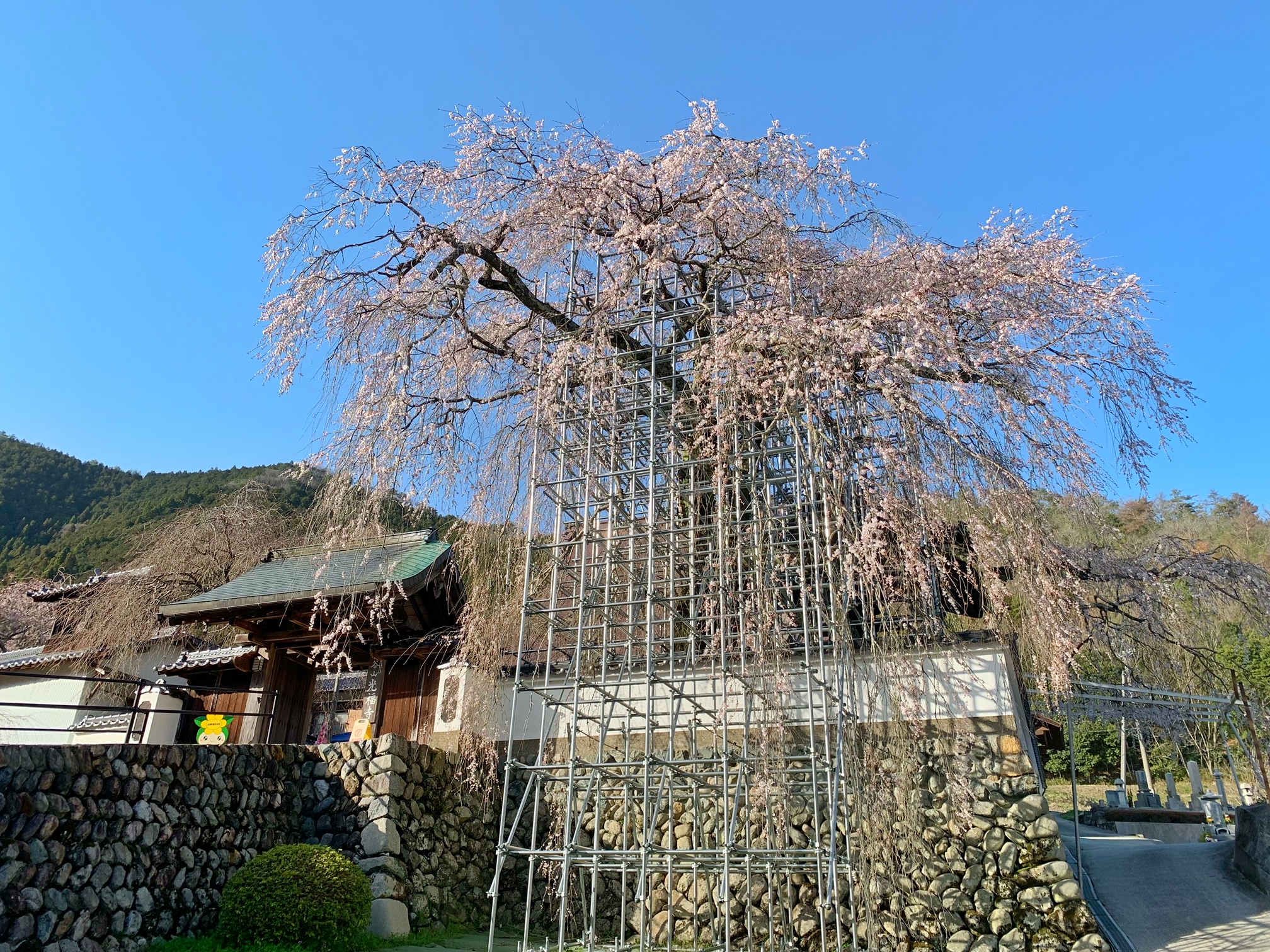 樹齢約300年を誇る大糸桜が境内の鐘楼をつつみ、その美しさにひかれ多くの人々が訪れる、
