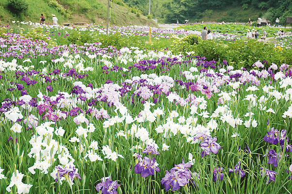 佐用町でも山深い場所にある地域"西新宿"の昔の田んぼに植えられた170種1万3000株の花しょうぶ園。