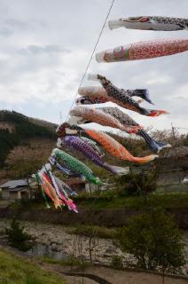 志文川上流に位置する真宗集落。毎年4月上旬から6月上旬にかけて、20匹以上のこいのぼりが川の上で気持ちよさそうにそよぎます。