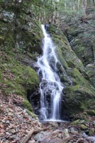 下秋里集落の集会所から南へ延びる狭い谷筋を上ると、長野の滝があります。屏風を巡らせたような岩盤から流れる一筋の水は、清楚な印象を与えます。しかし、平成21年の災害後、滝への道が荒れて、現在は近づくことができません。