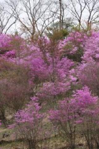 淀集落の県道沿いにある観音山の山ぎわは、4月下旬になると桃色に染まります。もともと生えていた山ツツジが見事に育ち、通りがかる人を楽しませています。この山のにぎわいを楽しもうと、満開の時期に集落の皆さんが食べ物を持ち寄って、「ツツジ祭り」を開いています。