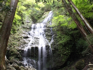 そして、滝周辺の植林地の間に見られるアラカシを主とした岩上植物が注目され、ほかにノグルミ、ヤマグルマ、カゴノキ、アカシデ、イロハモミジなどがあります。分布上珍しい植物にオチフジ、イワツクバネウツギ、オオズミ、キビノクロウメモドキ、チトセカズラ、クマガイソウなどがあります。これらは滝とともに美しい自然景観をなしており、昭和62年3月24日、滝を中心に2,004平方メートルの範囲が県指定の名勝となりました。