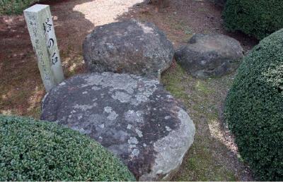 佐用高校前庭の植込みのなかに、「塔の石」と銘打たれた不思議な石を3つ見ることができます。