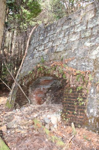 桜山集落の谷あいを登りきると、高さ3メートルほどの石垣に、レンガで枠の積まれた遺構があります。今はふさがれているこの穴は、江戸時代中ごろから昭和40年ごろまで300年近く銅を採掘していた坑道です。幕山地区で生まれ育ったかたは「ほら穴のある金山やろ。よう遊びよった」と口をそろえます。