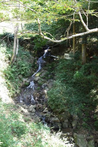 桜山集落を抜ける県道沿いの木々の中に、さらさらと流れる滝があります。