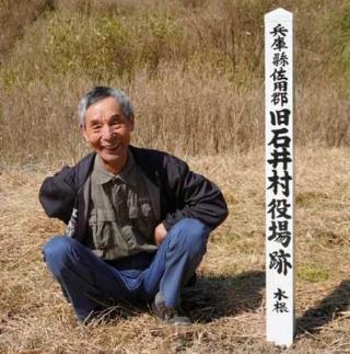跡地にはこれまで木製の標柱がありましたが、年月が経って朽ち、2020年2月に平井均さん(上石井)が文字を書き入れた新しい標柱が立てられました。水根自治会長の平尾一好さんは「子どもの頃、当時の村長におみやげをねだったり、猟師に追われたイノシシが役場に向かって走ってきたことがあったなぁ」と懐かしんでいました。
