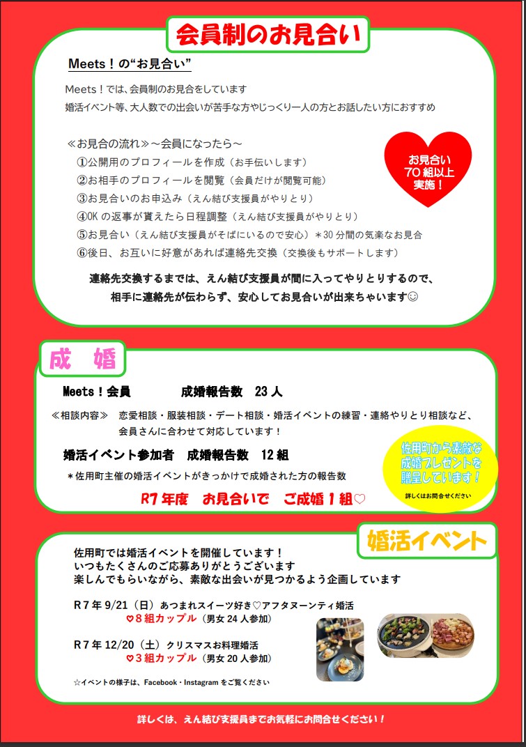 詳しくは、「出会いの場『ミーツ!』会員募集中です!」をご覧ください。